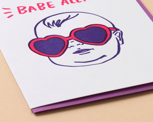 And Here We Are - Babe Alert Letterpress Greeting Card - New Baby, Baby shower- Made in USA