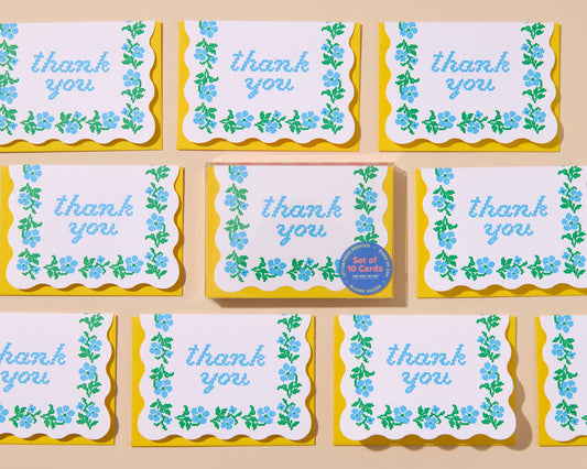 And Here We Are - Letterpress Thank You Notecards—Floral Crossstitch