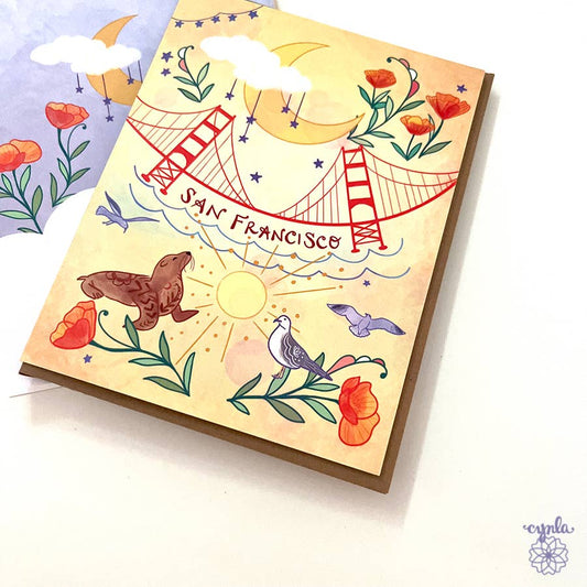 Cynla - San Francisco Moon Bridge greeting card Golden Gate Bridge