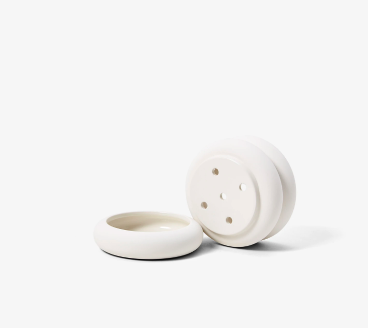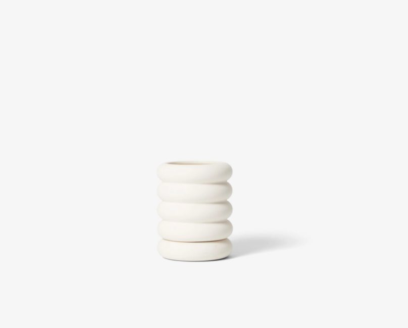 The Stacking Planter discretely integrates both a planter and saucer into one form. Lift out the bottom ring to reveal a hidden saucer. The circular stoneware form takes its inspiration from high voltage ceramic insulators found on power lines.