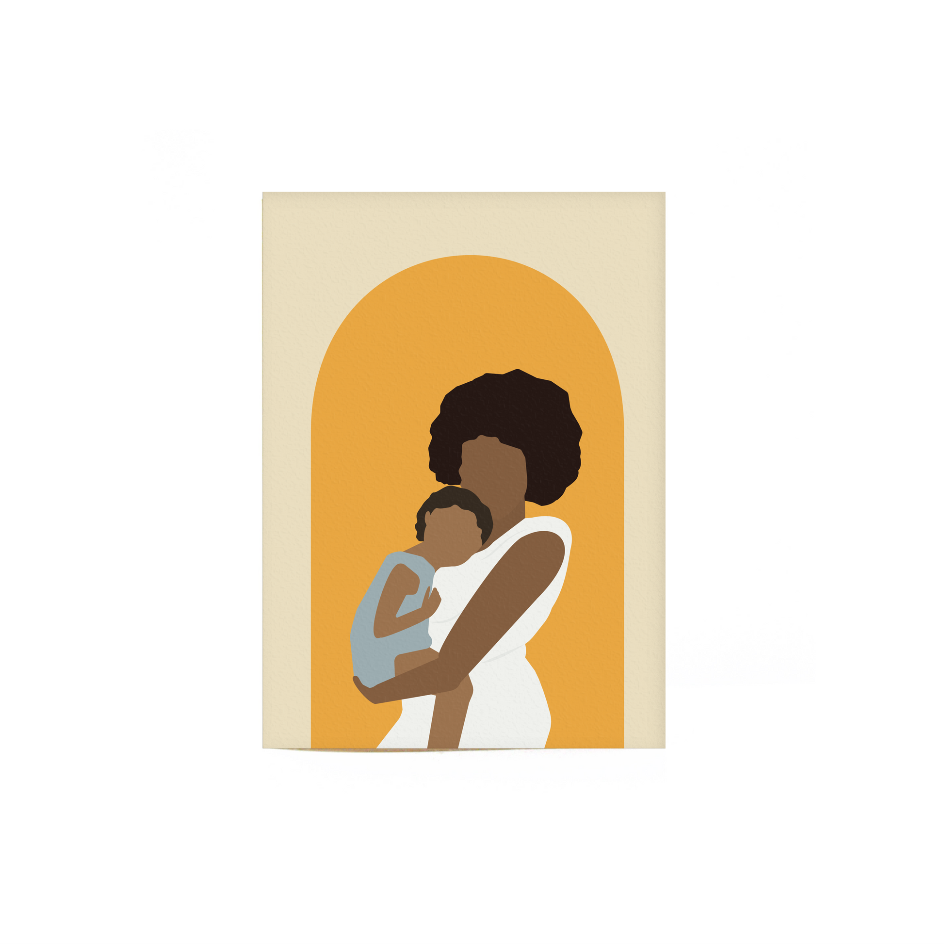 This is the fourth “design in the Kinfolk series, which includes illustrations of Black family life. Card No. 4 features a woman “holding a “small child in her arms “and was designed by SaVonne Anderson, Founder and Creative Director of Aya Paper Co.