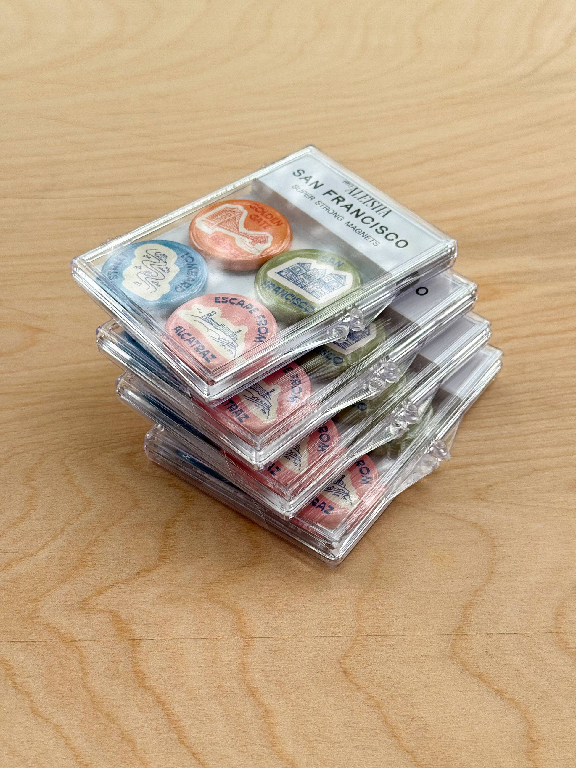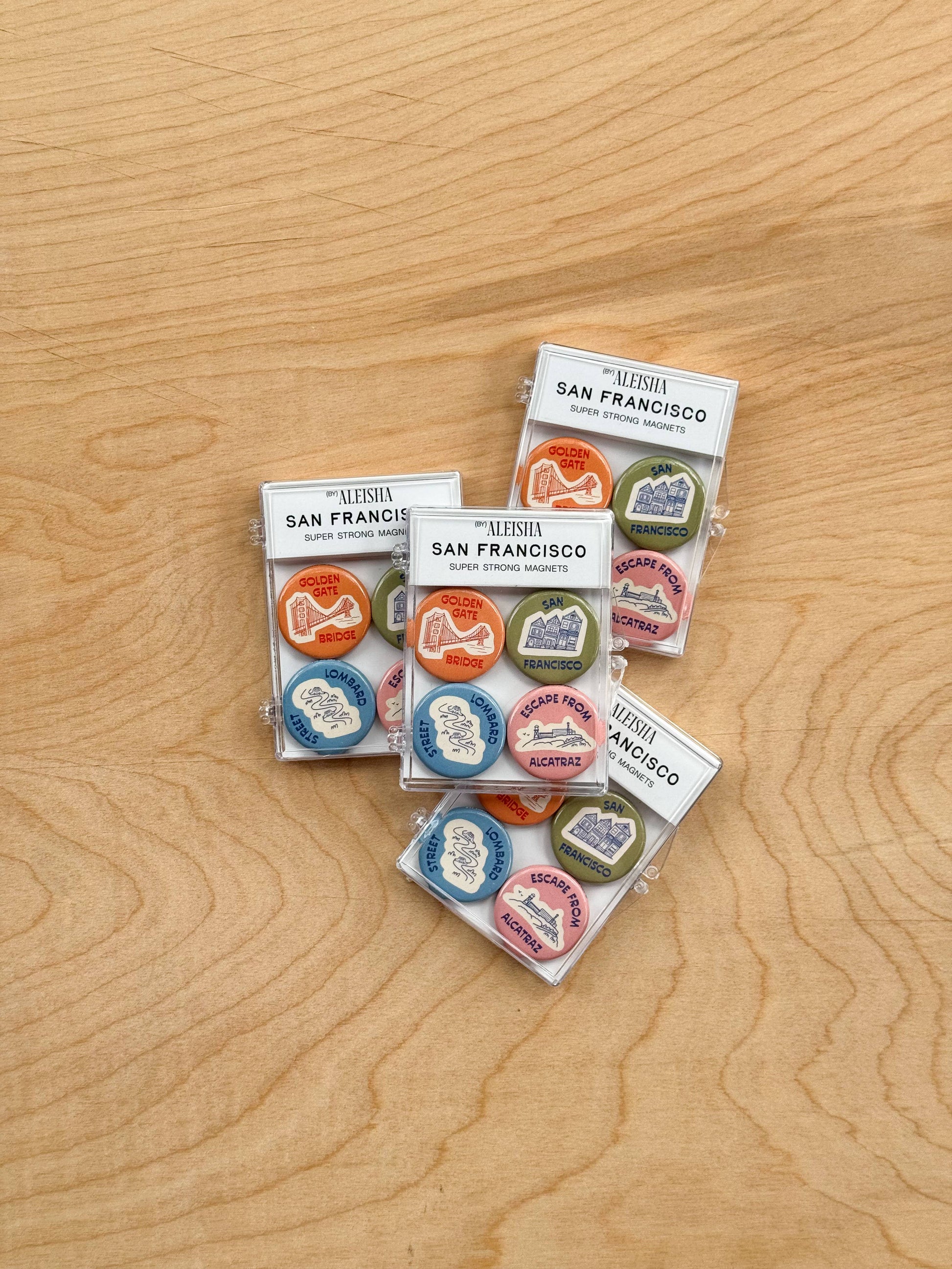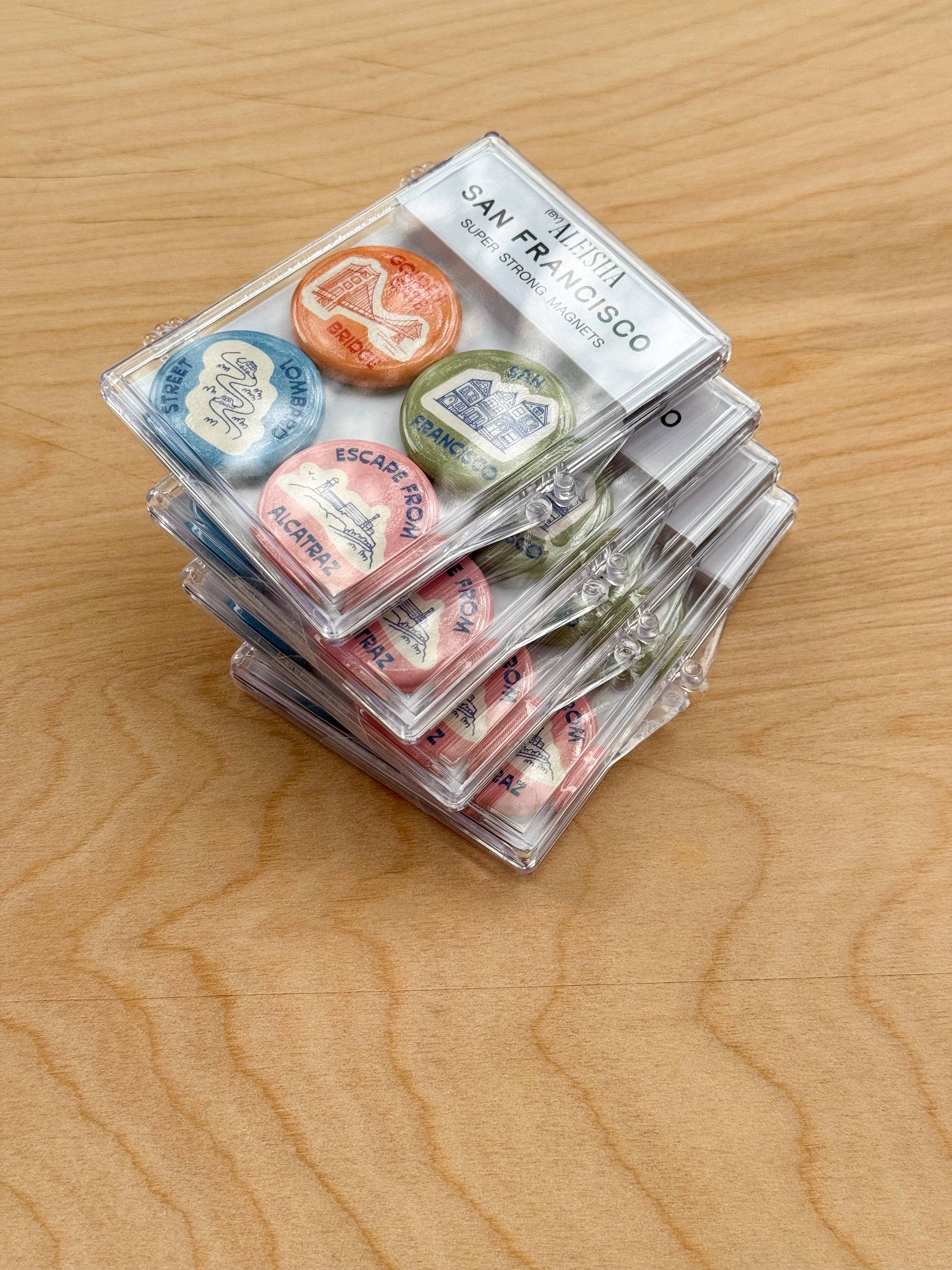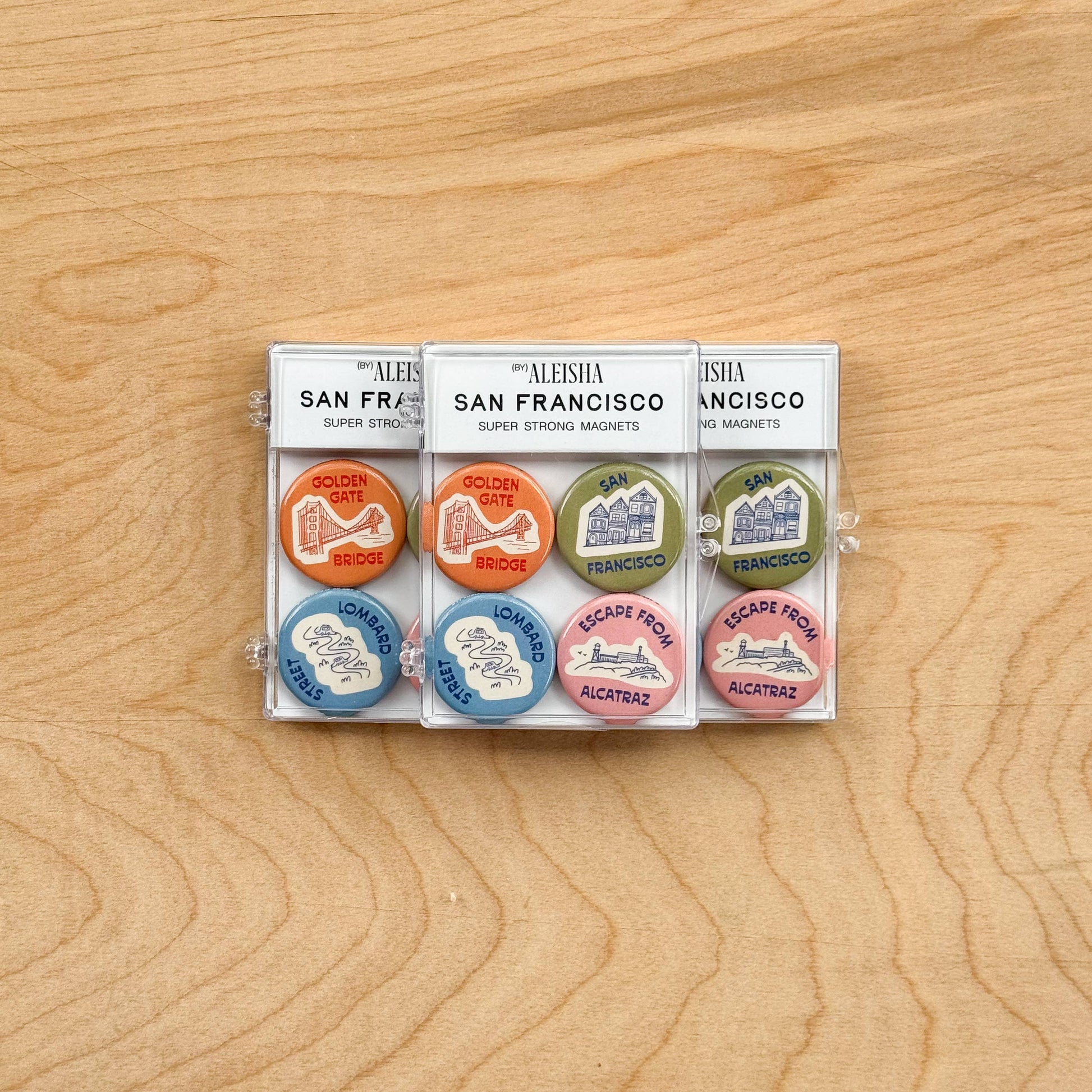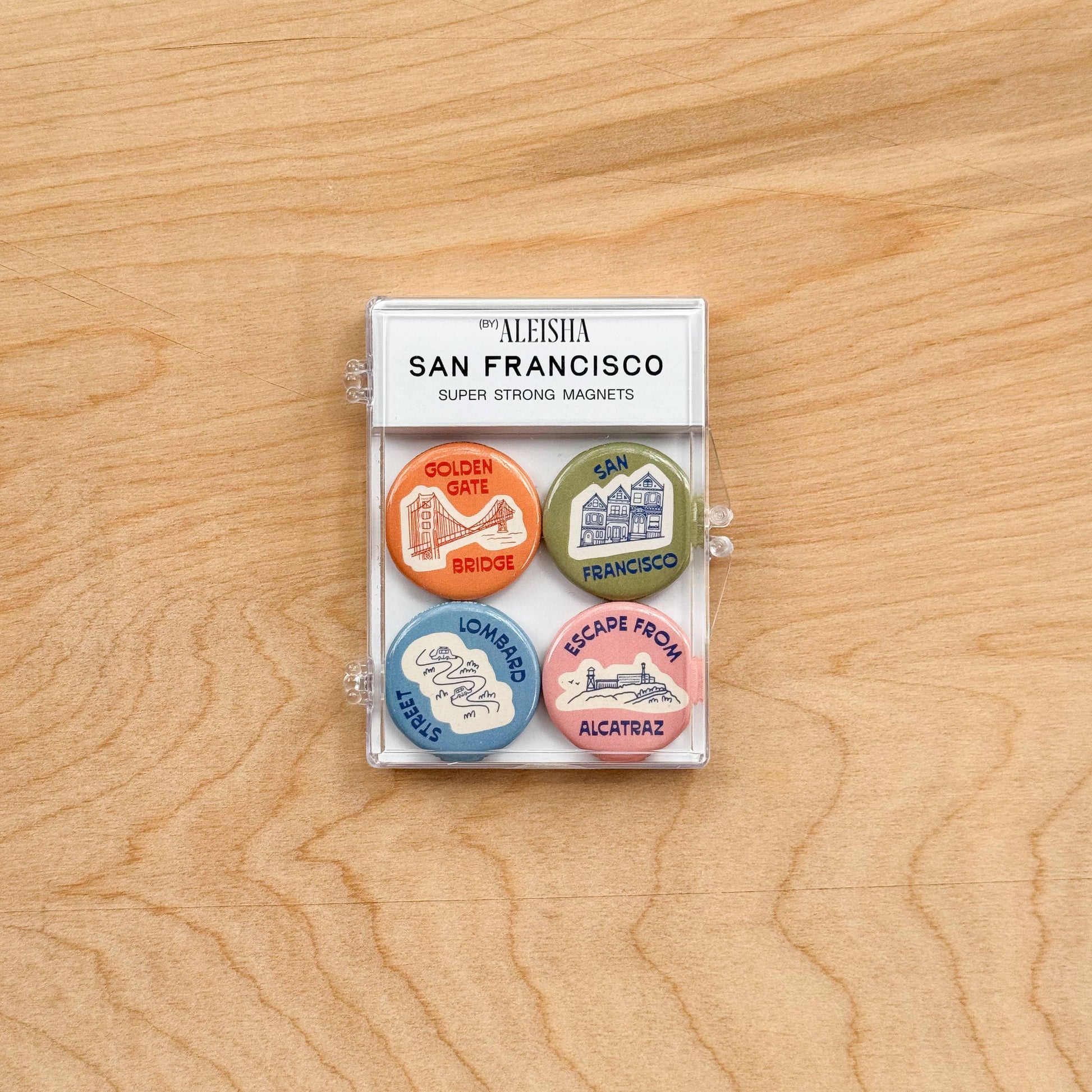 Bring the charm of San Francisco home with you. This set of 4 super strong magnets will add the perfect flair to your fridge, filing cabinet, or locker. The best part is that they're so strong they will *actually* hold up those cards and flyers you get in the mail!
