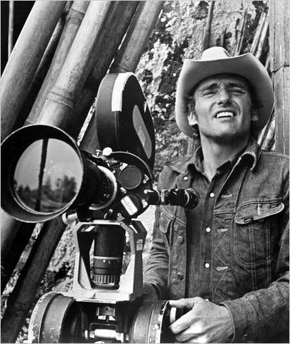 Filmmaker, actor and artist Dennis Hopper (1936 –2010) first appeared on television in 1954 and spent the next five decades both in front of and behind the camera. As a photographer, his output was particularly concentrated in the 1960s; the Nikon camera his wife Brooke Hayward gifted him hung so prominently around his neck that friends jokingly called him “the tourist."
