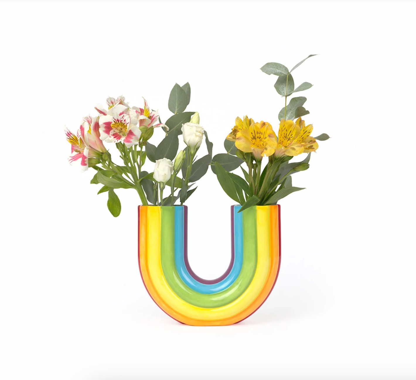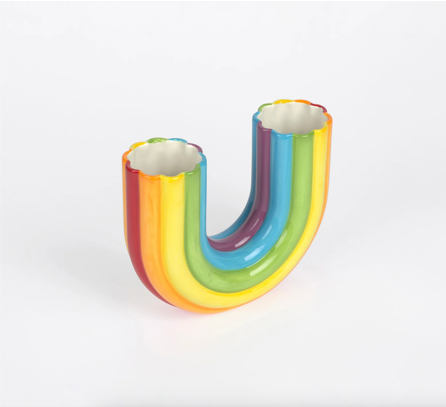 Ceramic double vase with a bumpy colorful texture that will spark joy to your home!