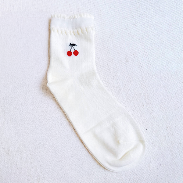 Add a sweet and fruity touch to your sock collection with the Cherries Ankle Socks. These socks feature a playful cherry pattern, perfect for adding a fun, vibrant element to your outfit.