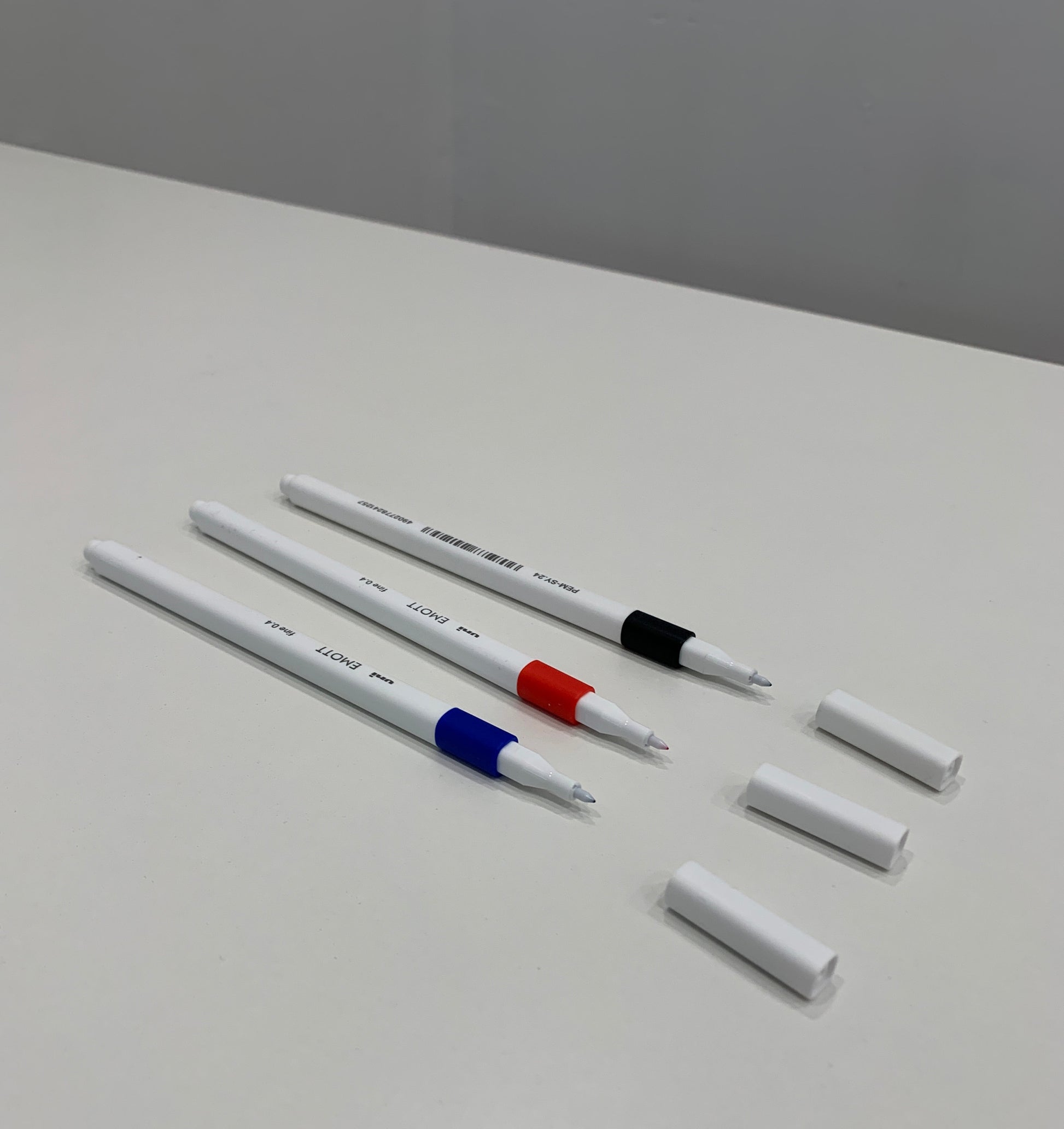 Stylish, minimalist barrel design: matt white finish with a 15mm band denoting ink colour. 7mm square profile, secure cap that posts easily onto the end of the pen.