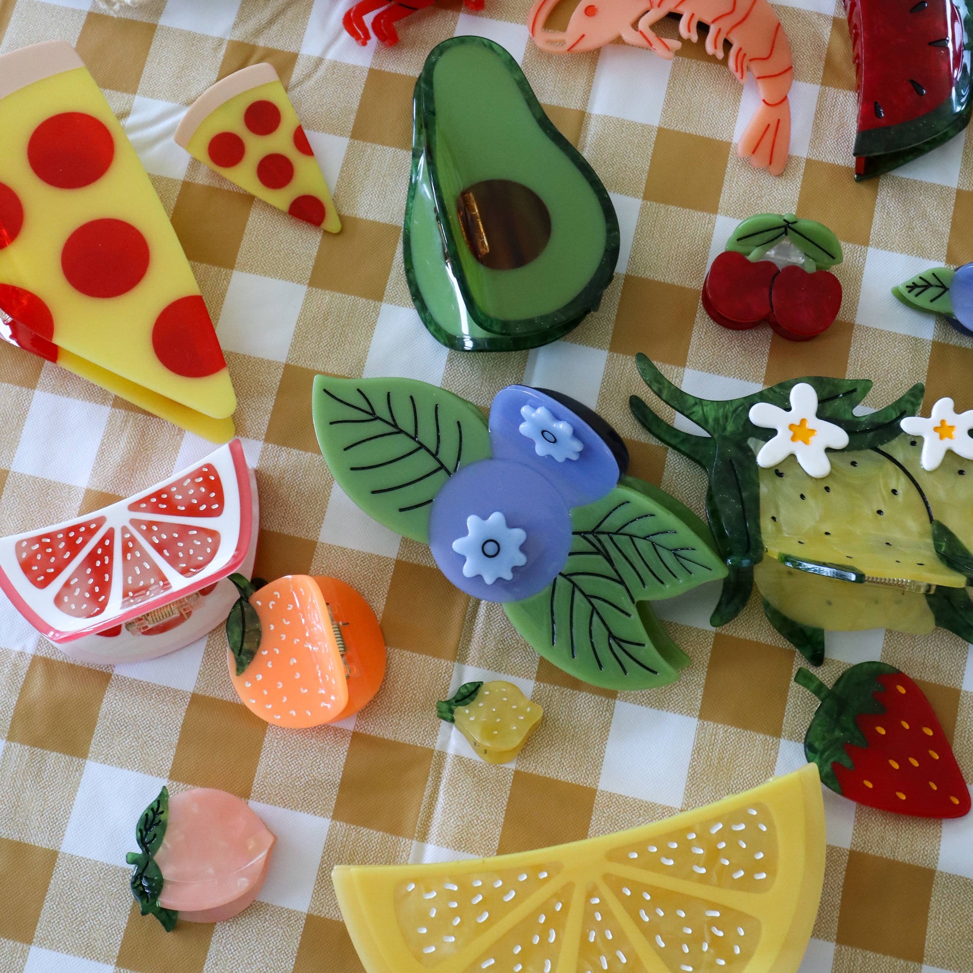 This mini peach hair claw clip is small, sweet, and ready to shine. Made from shimmering iridescent cellulose acetate, it’s an eco-friendly accessory with fruity flair. Each one is handmade, hand-painted, and totally unique. Measures approx 1.5" x 0.85" x 0.5". The perfect peachy pop for short hair, half-up styles, or your favorite summer look.
