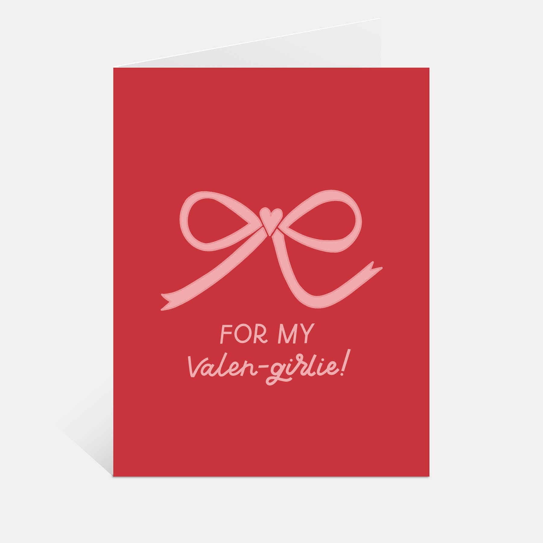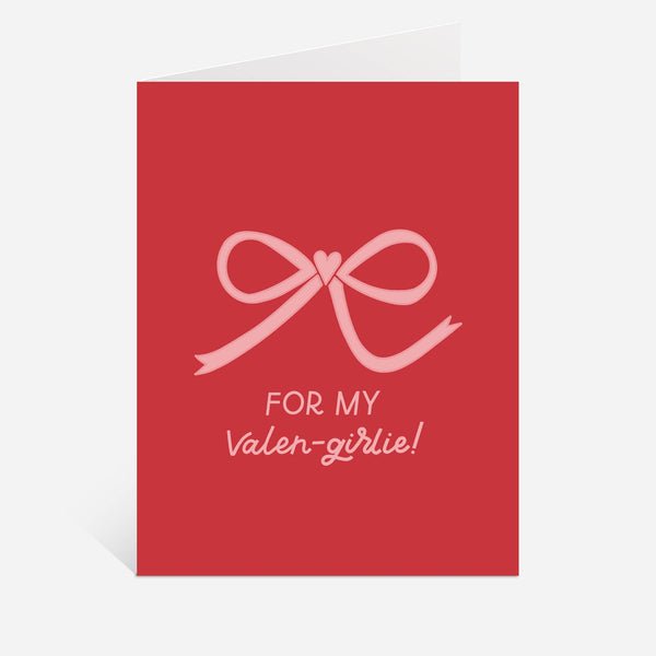 For The Valen-Girlie Bow Greeting Card. A2 size (4.25” x 5.5”). Folded greeting card, blank inside. Professionally printed on white card stock. Cello sleeve and envelope included. Hand lettered + designed in Michigan, printed in USA.