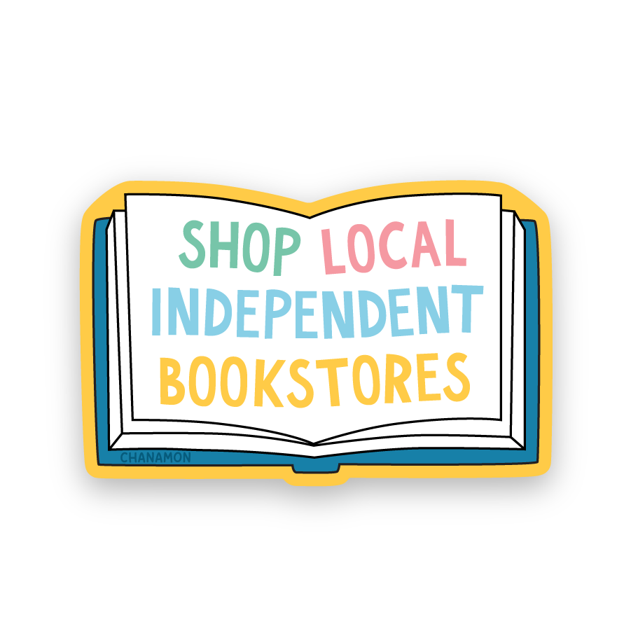 Say it loud and clear — right from the pages of a book. This sticker features the message 'Shop Local Independent Bookstores' written across an open book, perfect for readers who love to support their neighborhood shelves. Add it to your laptop, tote, or water bottle and share the indie bookstore love!
