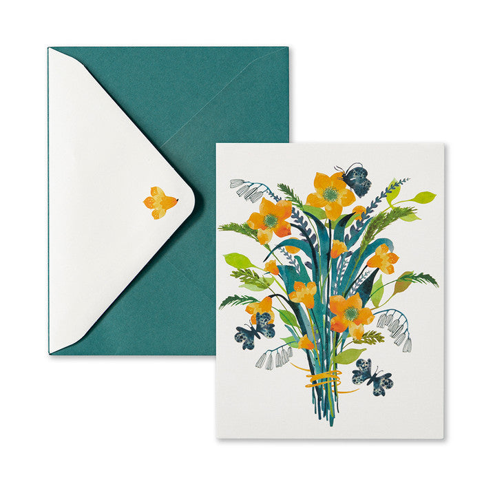 Sprigs of yellow flowers come together to create the elegant cover of these all-occasions note cards.