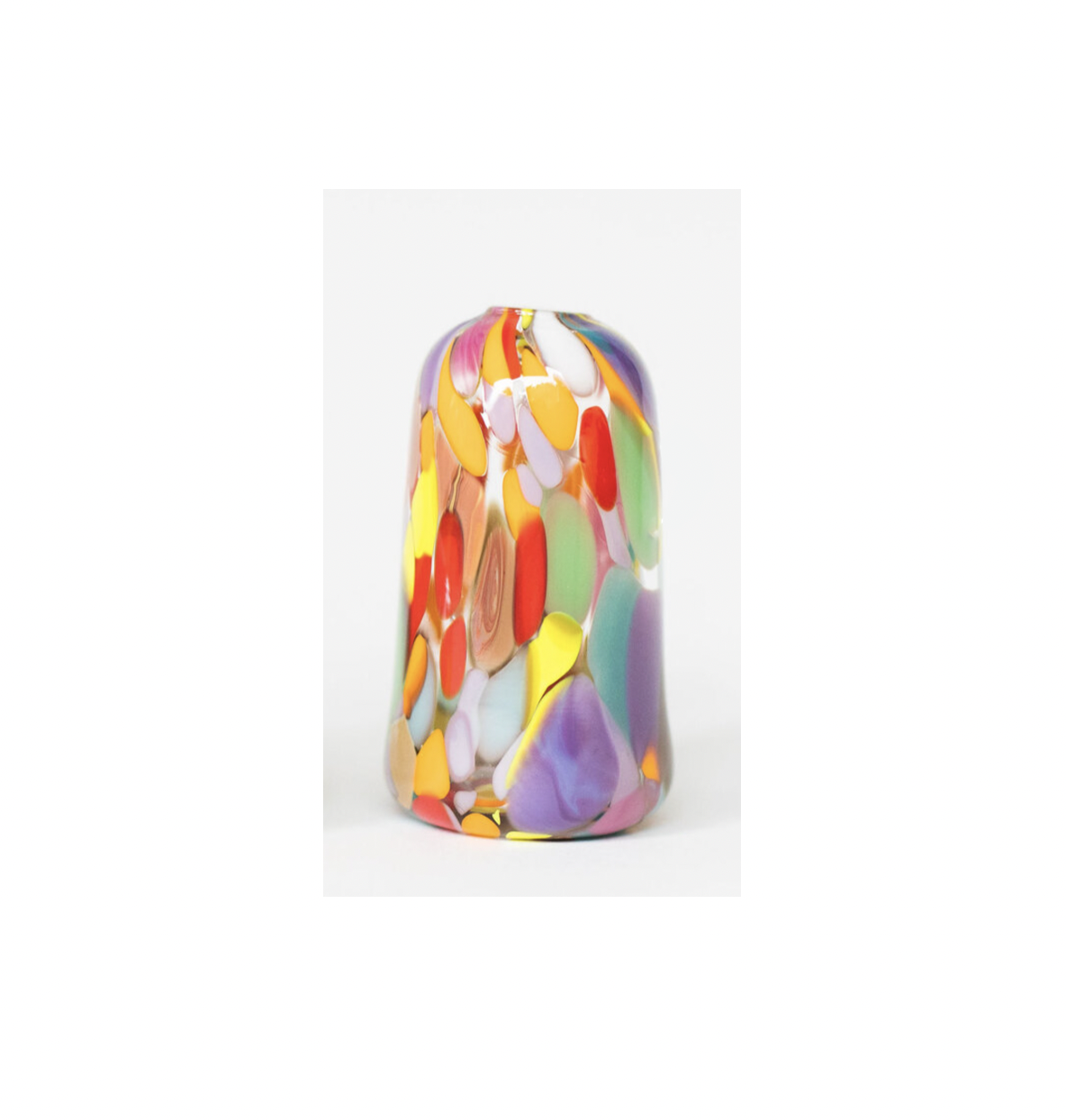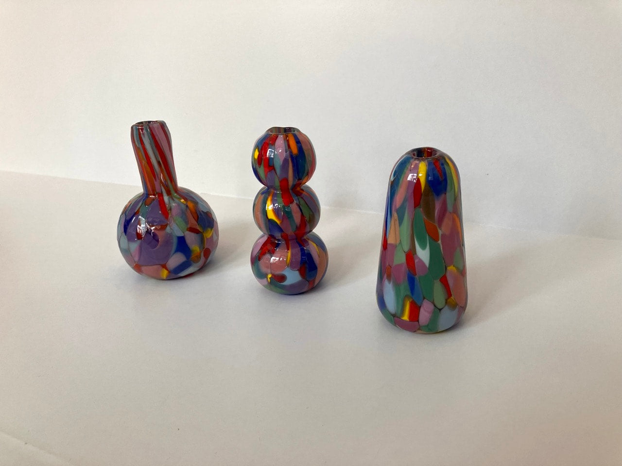 This is a one of a kind glass blown multi-colour mini vase handmade with love in Vancouver, BC.