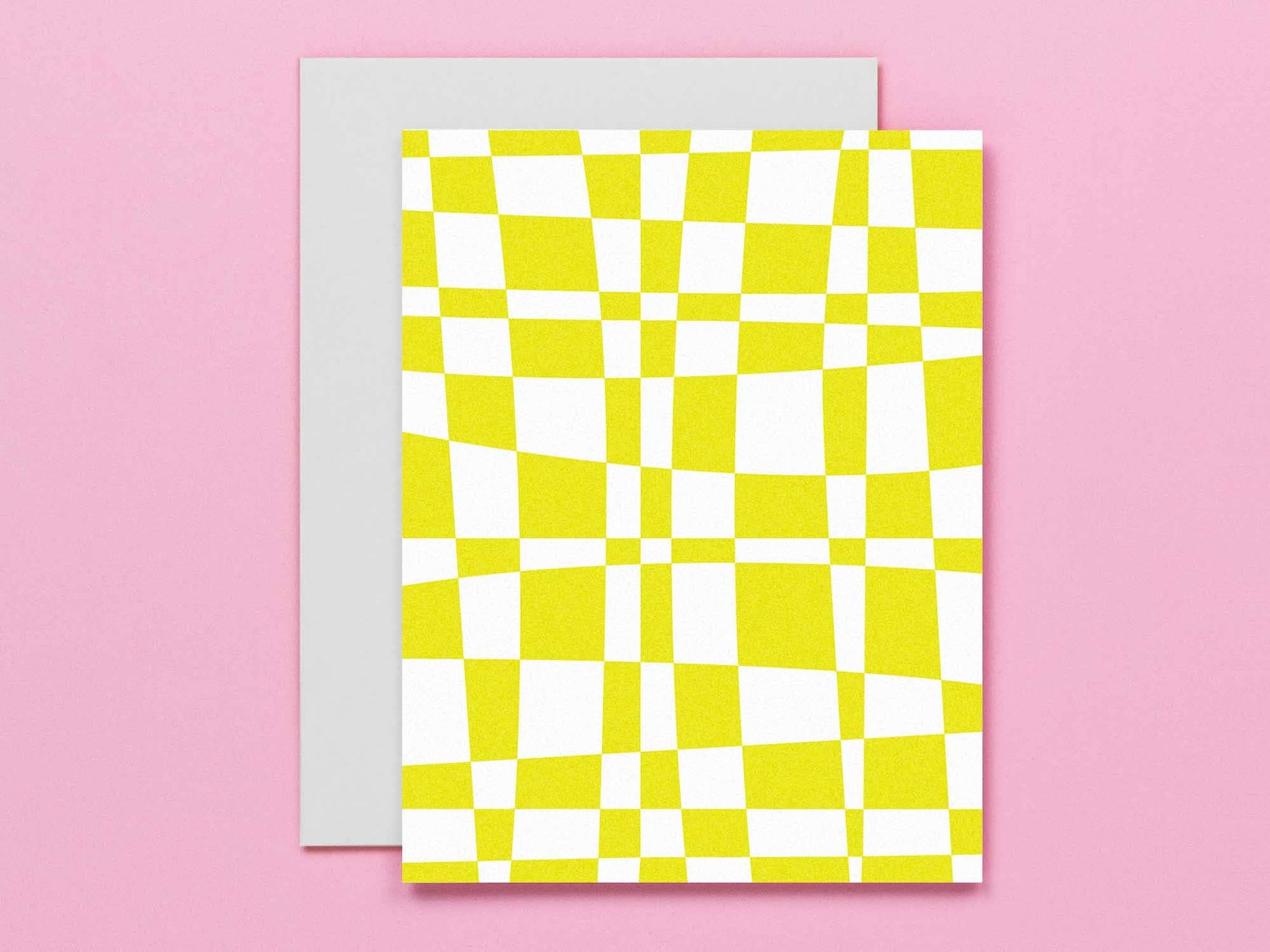 Blank card with abstract check pattern that bends space and time is not your average check pattern.
