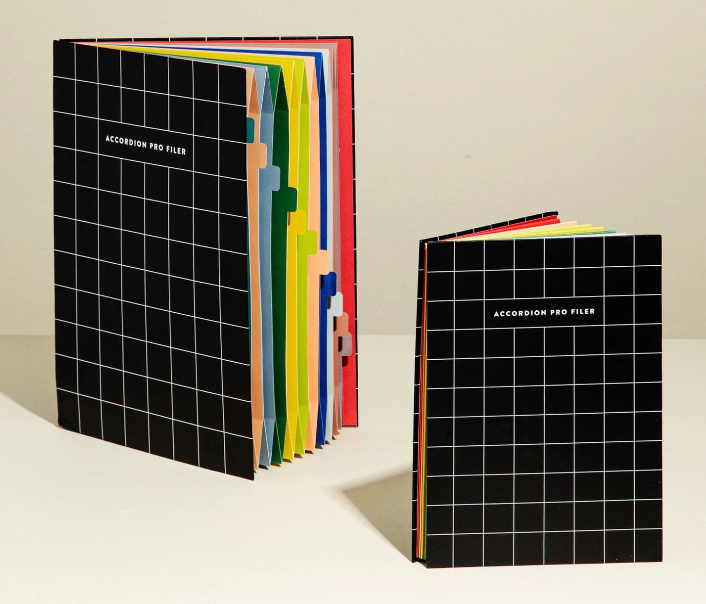 Planning, scheduling, meeting, developing, executing, delivering, creating. This organizational tool has 12 vibrant subfolders to organize and consolidate all the layers and shades of your life. From your bills and other important documents to mood board inspiration, this sturdy folder expands, contracts, and adapts.