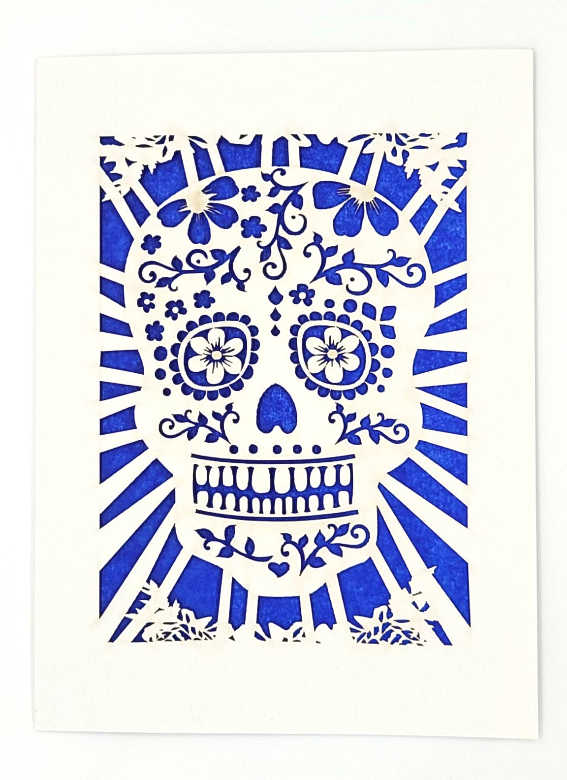 Sugar skull laser cut greeting card. Dia de Los Muertos - Day of the Dead - Halloween.