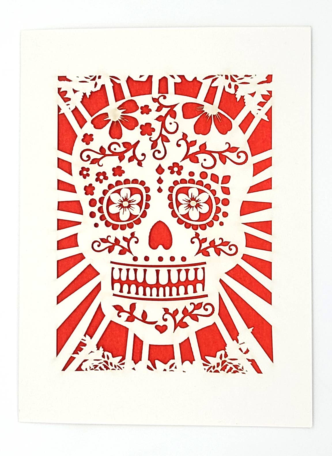 Sugar skull laser cut greeting card. Dia de Los Muertos - Day of the Dead - Halloween.